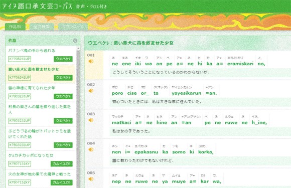 アイヌ民族が話すアイヌ語で民話を聞くことができるデータベース アイヌ語口承文芸コーパス が公開 人生の失敗例