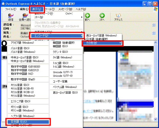 富士通q A Outlook Express 受信したメールが文字化けしています Fmvサポート 富士通パソコン