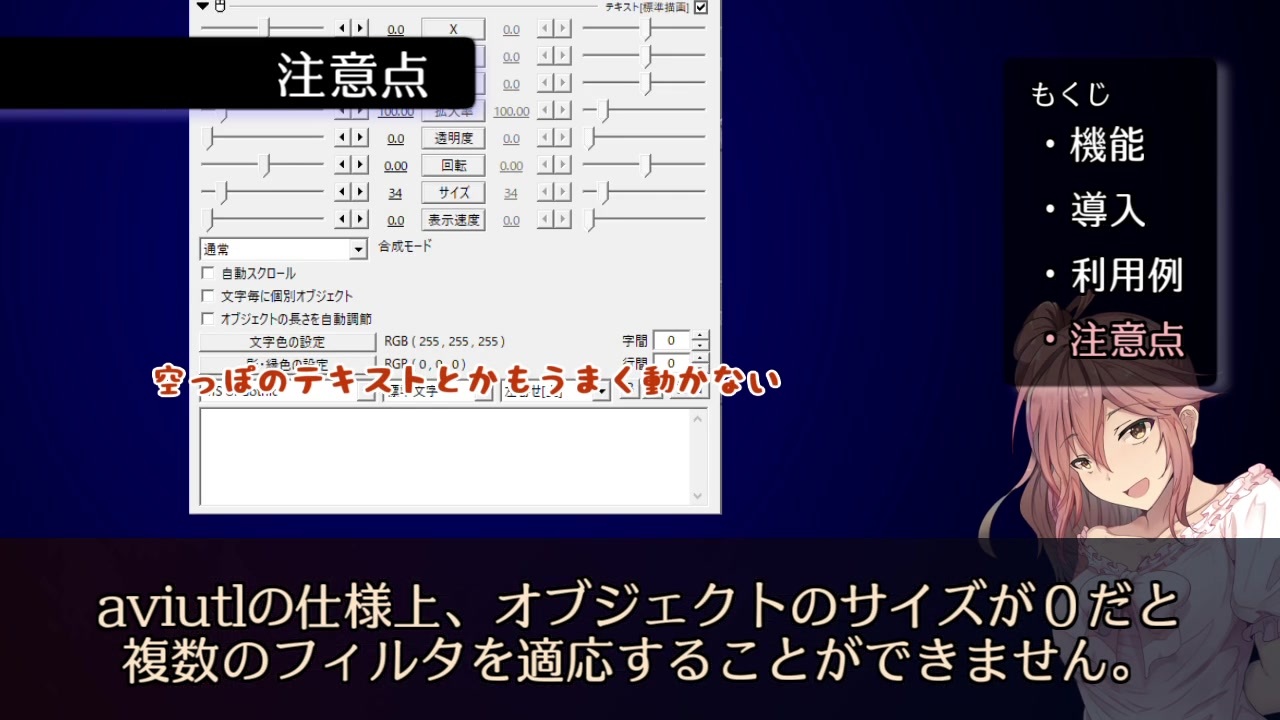 すんなりわかるaviutlのテキスト編集のやり方 字幕 テロップ エンドロールなど Aviutl簡単使い方入門 すんなりわかる動画編集