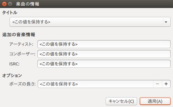 Ubuntu Brasero その30 複数のトラックのcd Textの情報をまとめて設定する 音楽プロジェクト Kledgeb