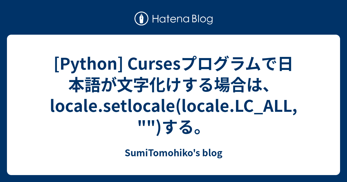 Python Cursesプログラムで日本語が文字化けする場合は Locale Setlocale Locale Lc All する Sumitomohiko S Blog