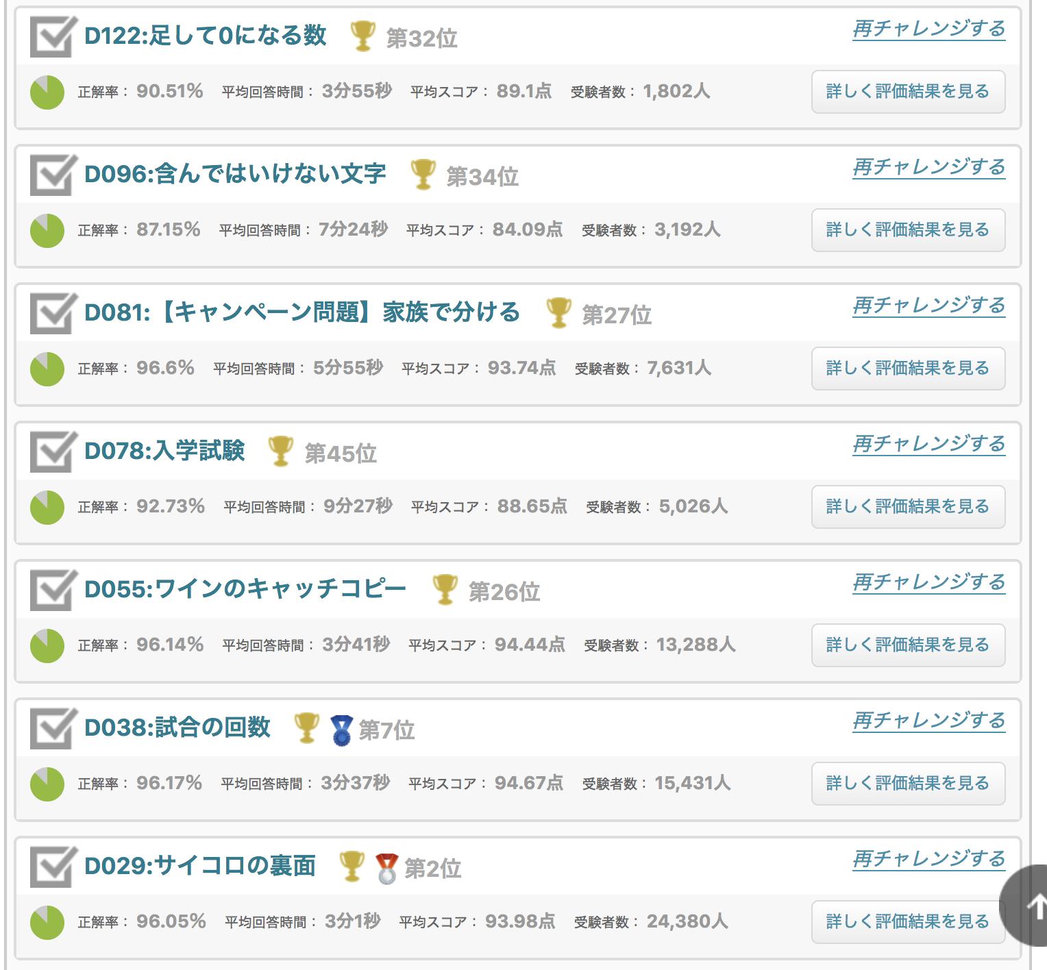すー Web制作 On Twitter なんだこれ 今気付いたんだけどpaizaでチャレンジ済みの問題のとこに順位出てる 解けたやつ大体正解率高いやつだったから次はその辺も見て問題選ぼう