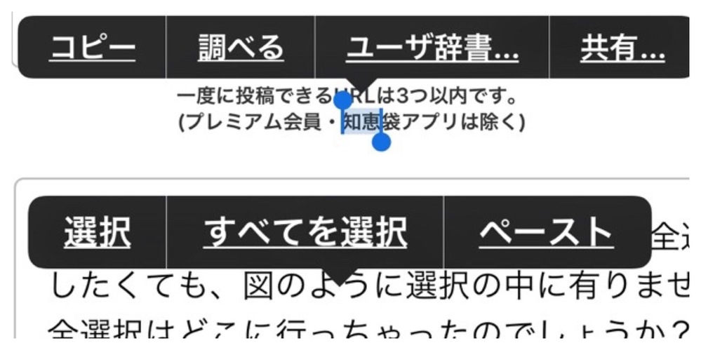 Ios12 0ですが Safariなどでテキストの全選択をしたくても 写真上 Yahoo 知恵袋