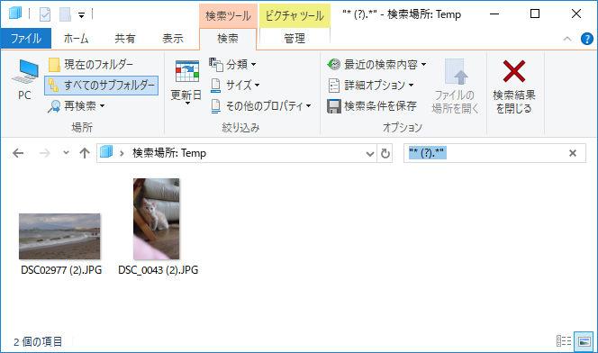 エクスプローラの検索で括弧 を含むファイルを表示する方法