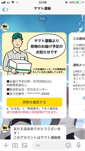 ヤマト運輸を名乗る怪しいline届きました 偽物ですか Yahoo 知恵袋
