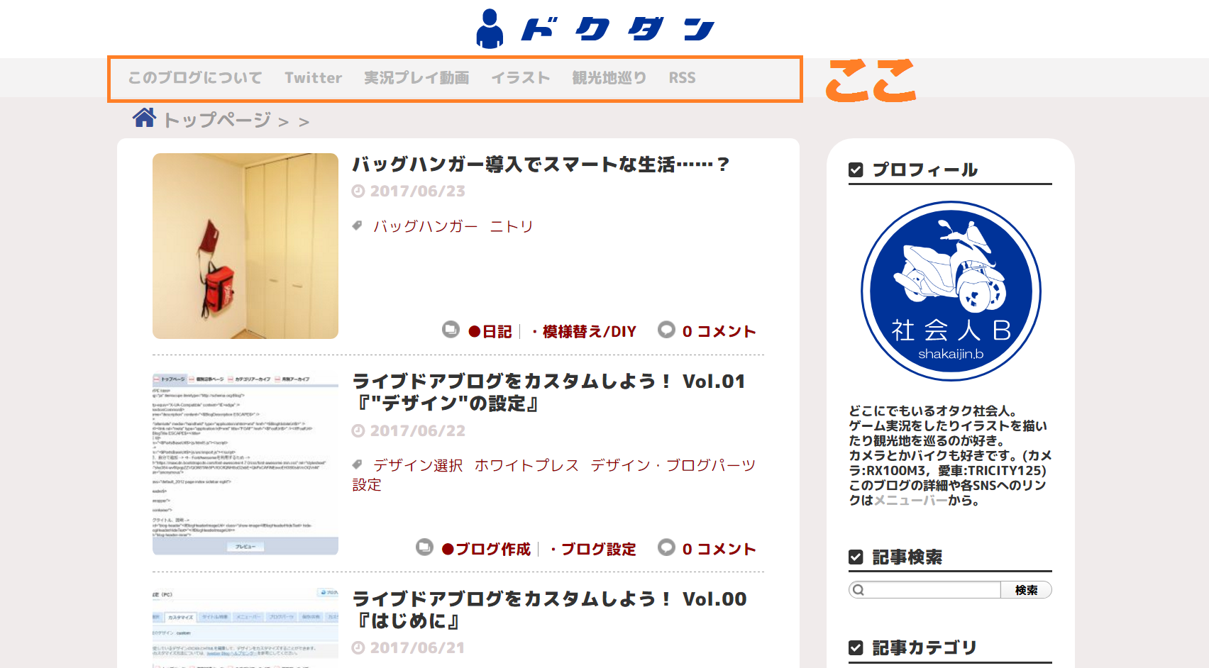 ライブドアブログをカスタムしよう Vol 07 ブログへメニューバーの設置と編集 ドクダン 独身男性の独断ライフハック