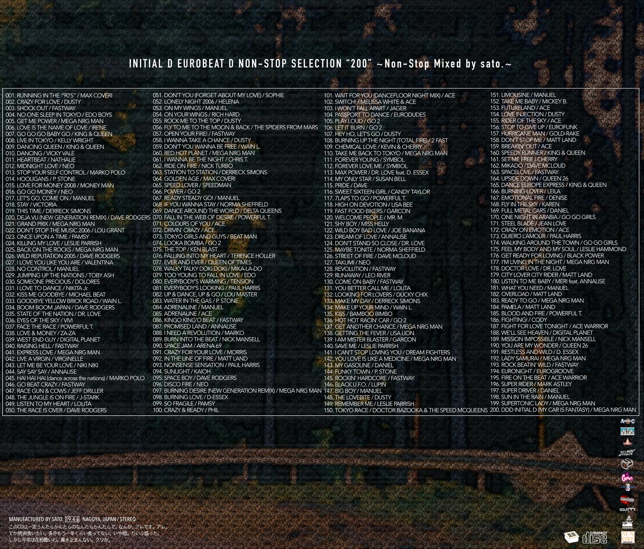 Sato On Twitter 頭文字d使用曲のユーロ楽曲全200曲non Stop 頭文字d Eurobeat D Non Stop Selection 200 公開しました Youtubeリンク Https T Co Squzebtag1 アニメ アーケード始め Cdでしか聞けないアノ曲からイニd好きしか気付かないようなアノ曲