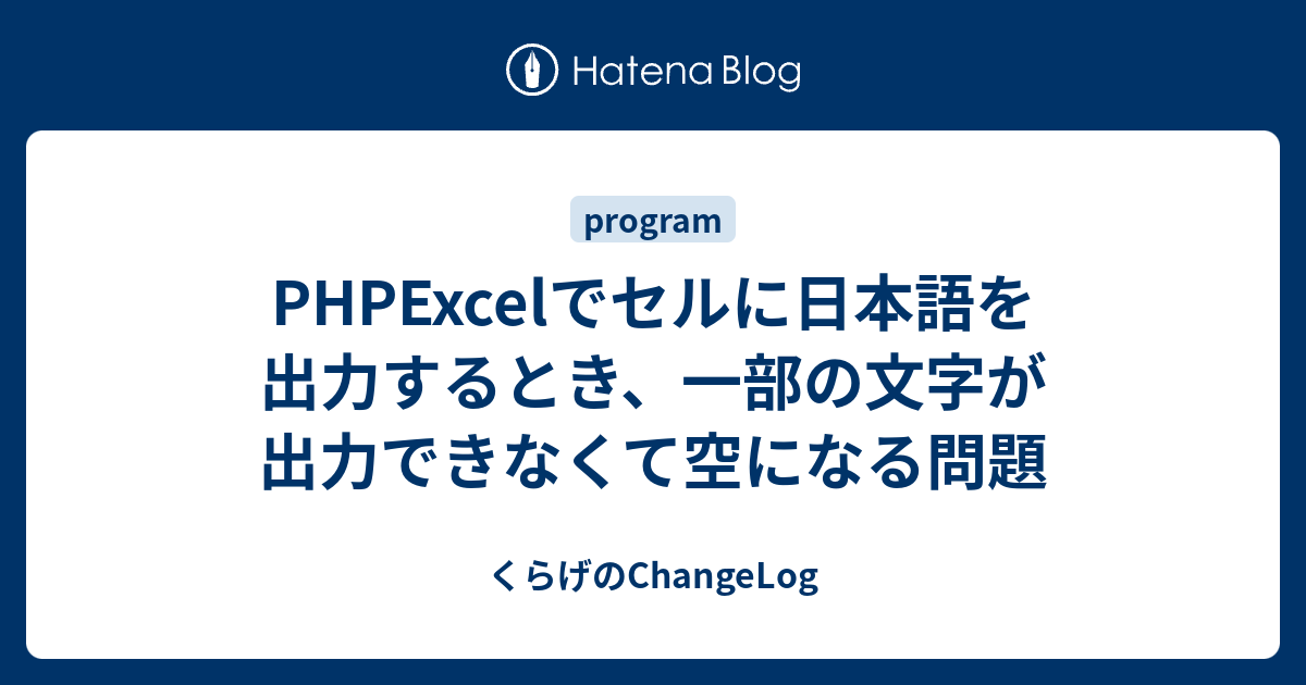 Phpexcelでセルに日本語を出力するとき 一部の文字が出力できなくて空になる問題 くらげのchangelog