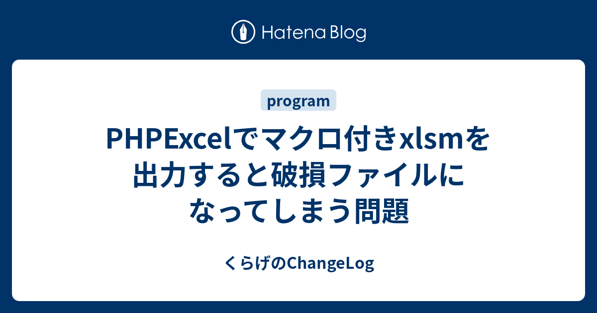 Phpexcelでマクロ付きxlsmを出力すると破損ファイルになってしまう問題 くらげのchangelog