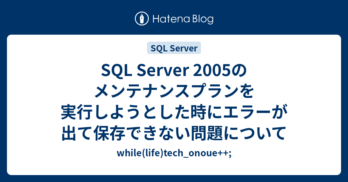 Sql Server 2005のメンテナンスプランを実行しようとした時にエラーが出て保存できない問題について While Life Tech Onoue