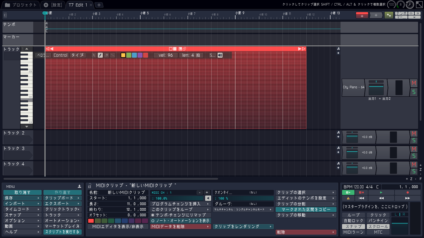 フリーのdaw Tracktion 7を使ってみよう 7 Midiクリップの編集 Tracktion 池田哲次のdtmメモ帳