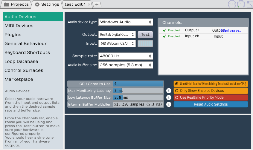 Tracktion5を使ってみる 2 初期設定 末那識2