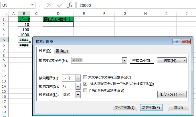 Dsp74118の補完庫 Excel Vbaのrange Findメソッドは 列幅が足りず 表示になっているセルの値を検索できない