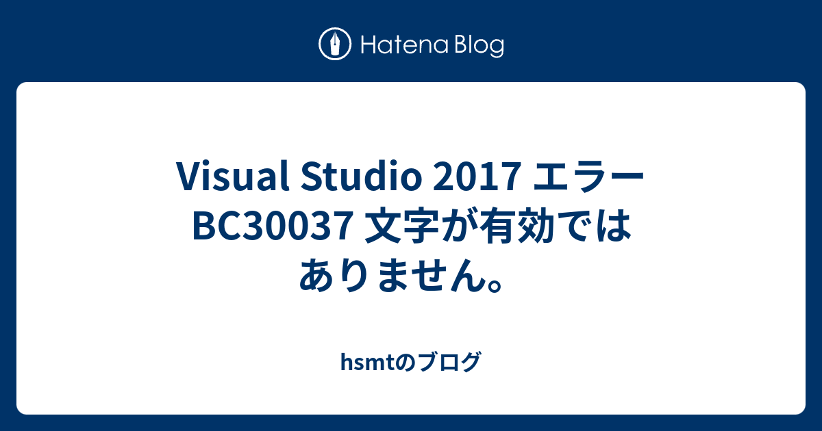 Visual Studio 2017 エラー Bc30037 文字が有効ではありません Hsmtのブログ