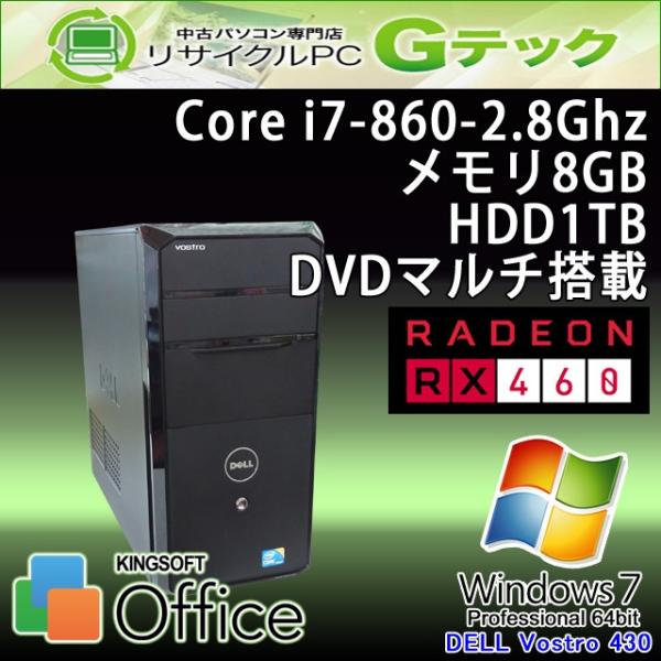 ゲームpc 中古パソコン Windows7 64bit Dell Vostro 430 Core 本体のみ 3ヵ月保証 I7 2 8ghz メモリ8gb Rx460 Office Hdd1tb Dvdマルチ ハイクオリティ